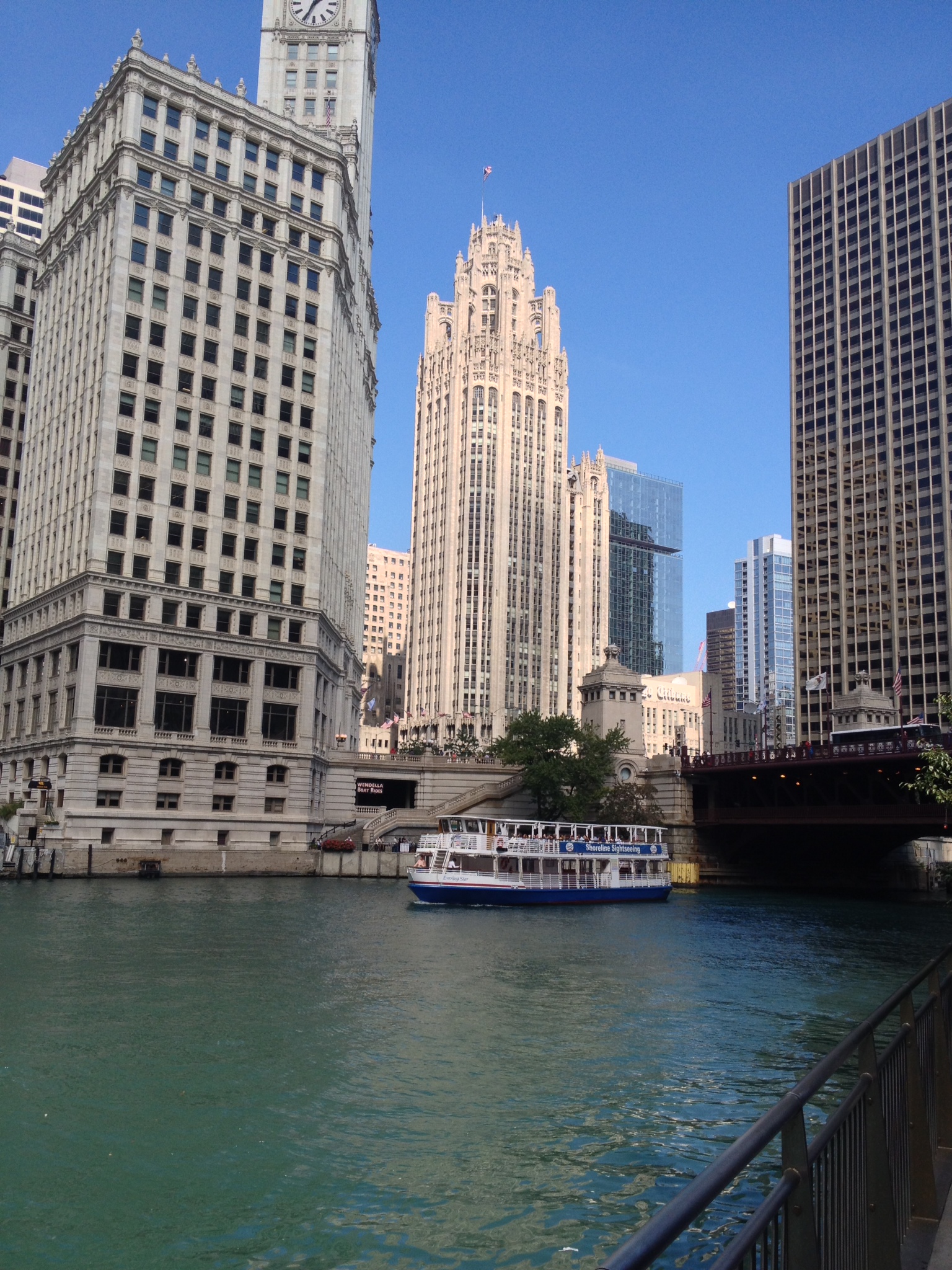 One of the most ionic non-skycraper buildings in Chicago is the Chicago Tribune Building, seen here from across the river. I’ll publish more photos from the river in due course.