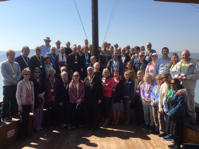 We walked in Jesus’ footsteps through the Holy Land. We saw the remains of the house of Mary in Nazareth where she was told by the angel Gabriel that she would give birth to the Son of God; we knelt at the very place where Jesus was born in Bethlehem; we saw Joseph’s workshop in Nazareth; we renewed our Baptismal vows at the very spot that Jesus was baptised by John; we visited Cana in Galilee, where Jesus performed his first miracle; we travelled around and on the Sea of Galilee where so many of the defining parts of Jesus’ ministry took place, walking on the same floor as he would have done when he taught in the Synagogue next to Peter’s house in Capernaum; we went to the place where the Sermon on the Mount was preached, as well as where he fed the five thousand from five loaves and two fish and we sailed out onto the Sea of Galilee as the fishermen in the gospels did. We went in minibuses up the steep and winding road to the top of Mount Tabor where the Transfiguration took place; we followed the path of Jesus through Jerusalem down the Mount of Olives, suffering in the Garden of Gethsemane, visited the place where Peter denied Jesus three times before the cock crowed twice. We walked the route that he was forced to carry his cross and stood at the places at which he was crucified and buried. We also walked where the risen Christ cooked fish for the disciples on the shore of the Sea of Galilee.