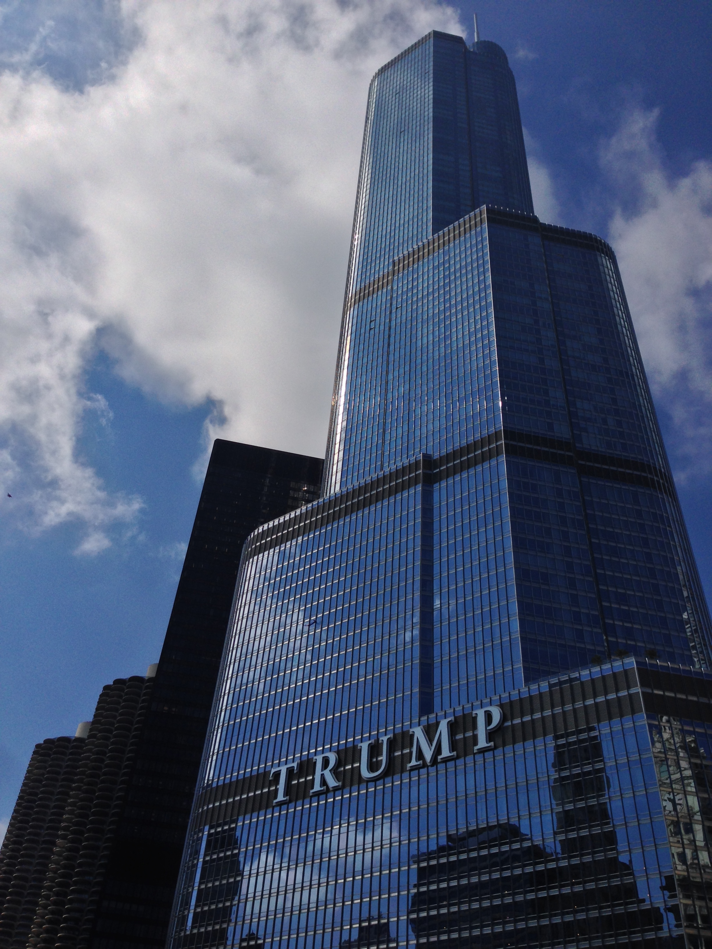 So to round off this first glimpse of Chicago, here is a picture of one of the towers that we kept on arriving in front of and photographing – the Trump tower (which you can probably guess from the picture).